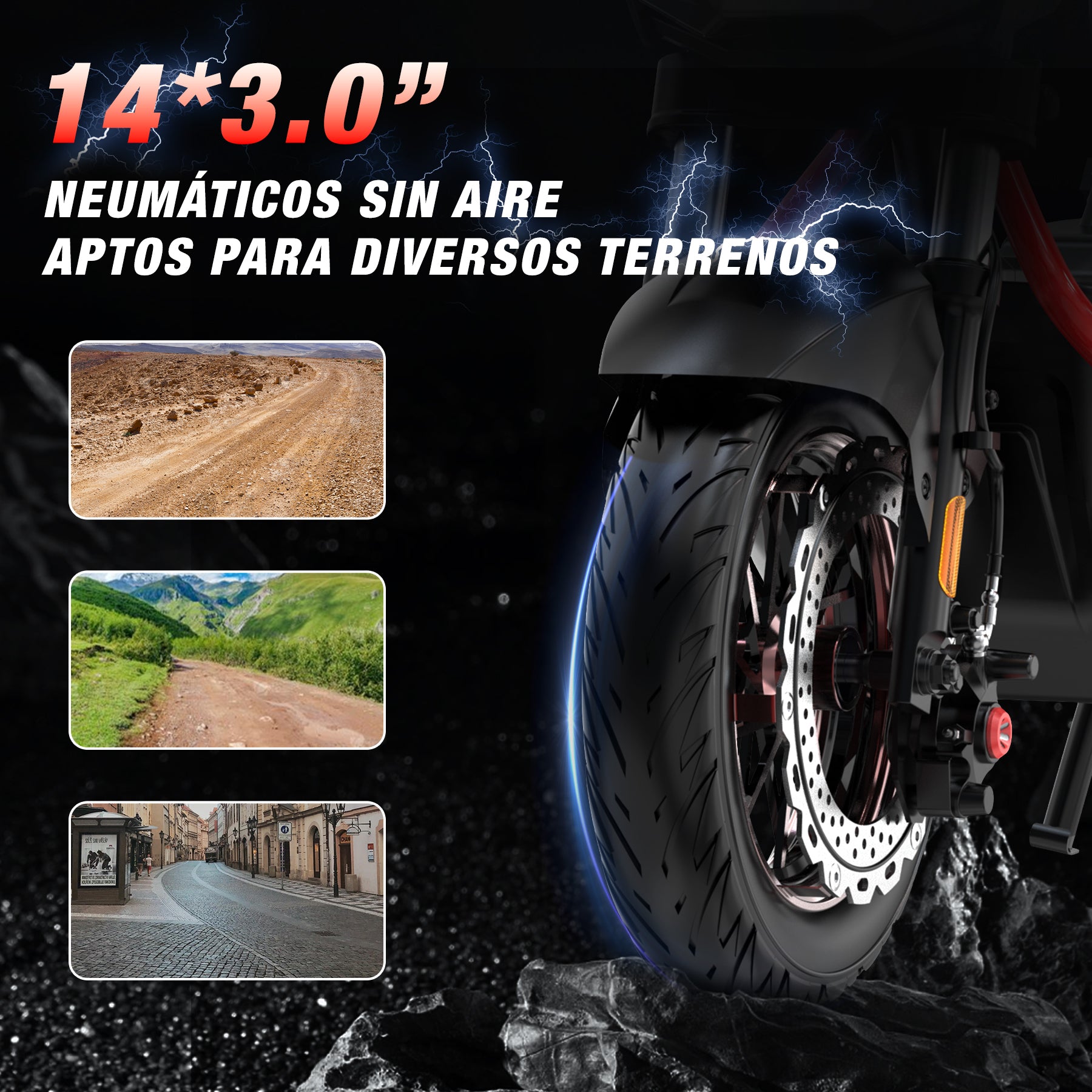 - Neumáticos inflables 14 × 3,0 pulgadas