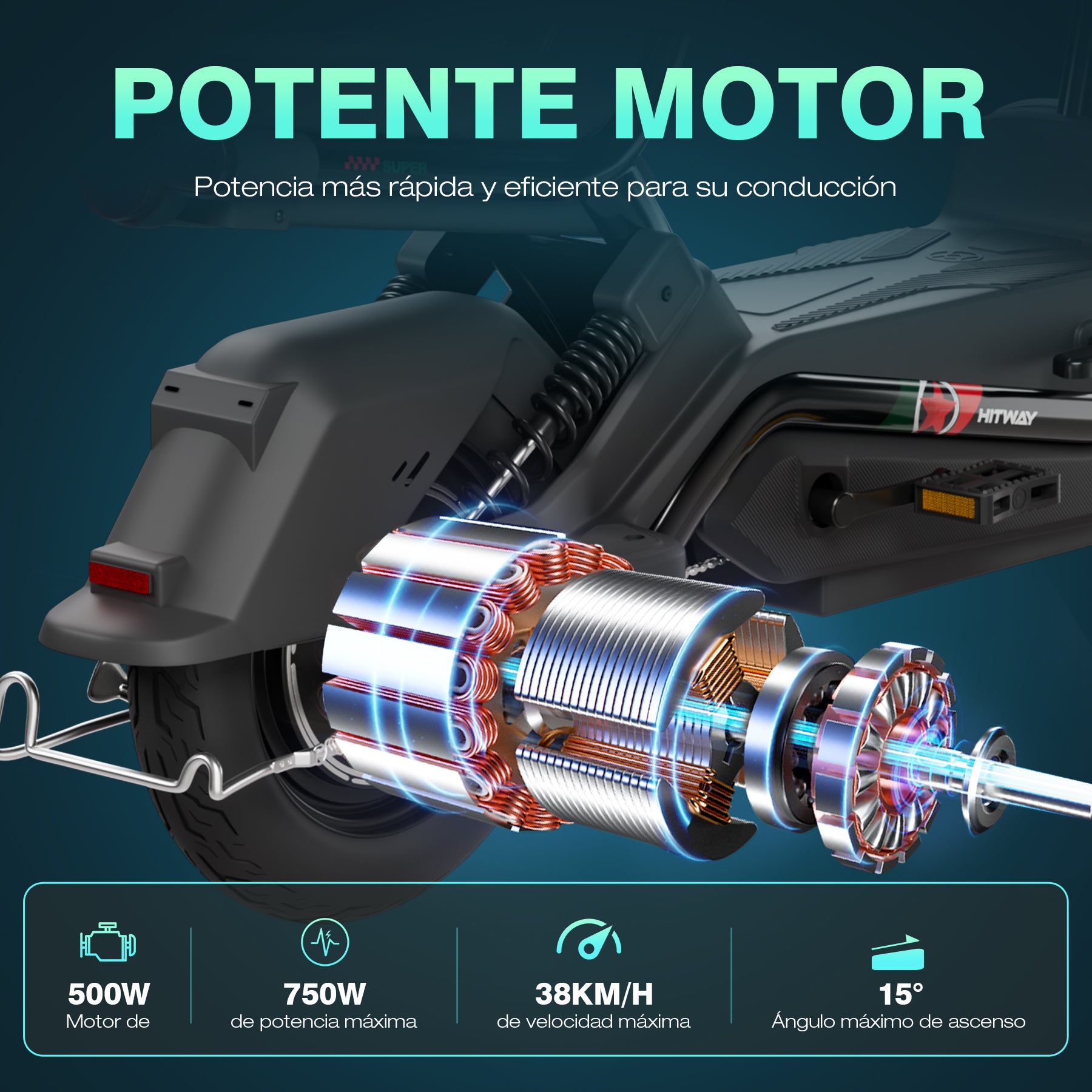 - Velocidad máxima 38 km/h