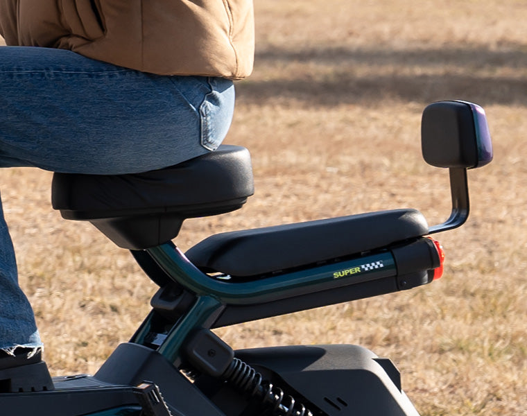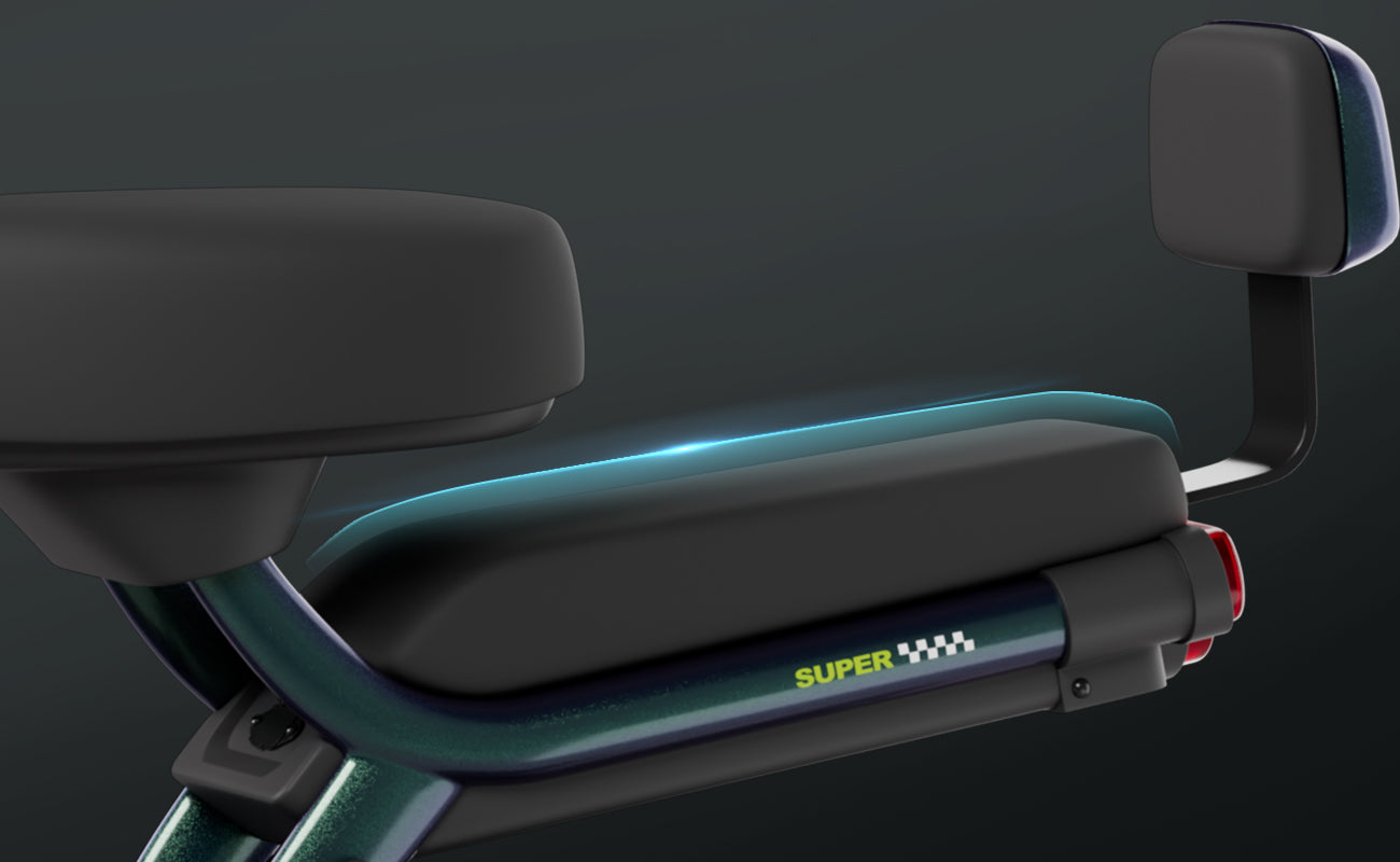 El cojín más ancho y grueso es ergonómico, por lo que no se sentirá cansado incluso después de un largo viaje. El asiento trasero también es estable y cómodo, y puede soportar hasta 40 kg, por lo que es fácil transportar niños o cargas sin presión. El acolchado de alta elasticidad hace que el asiento se sienta suave y seguro. El diseño del asiento convierte la conducción en un placer.