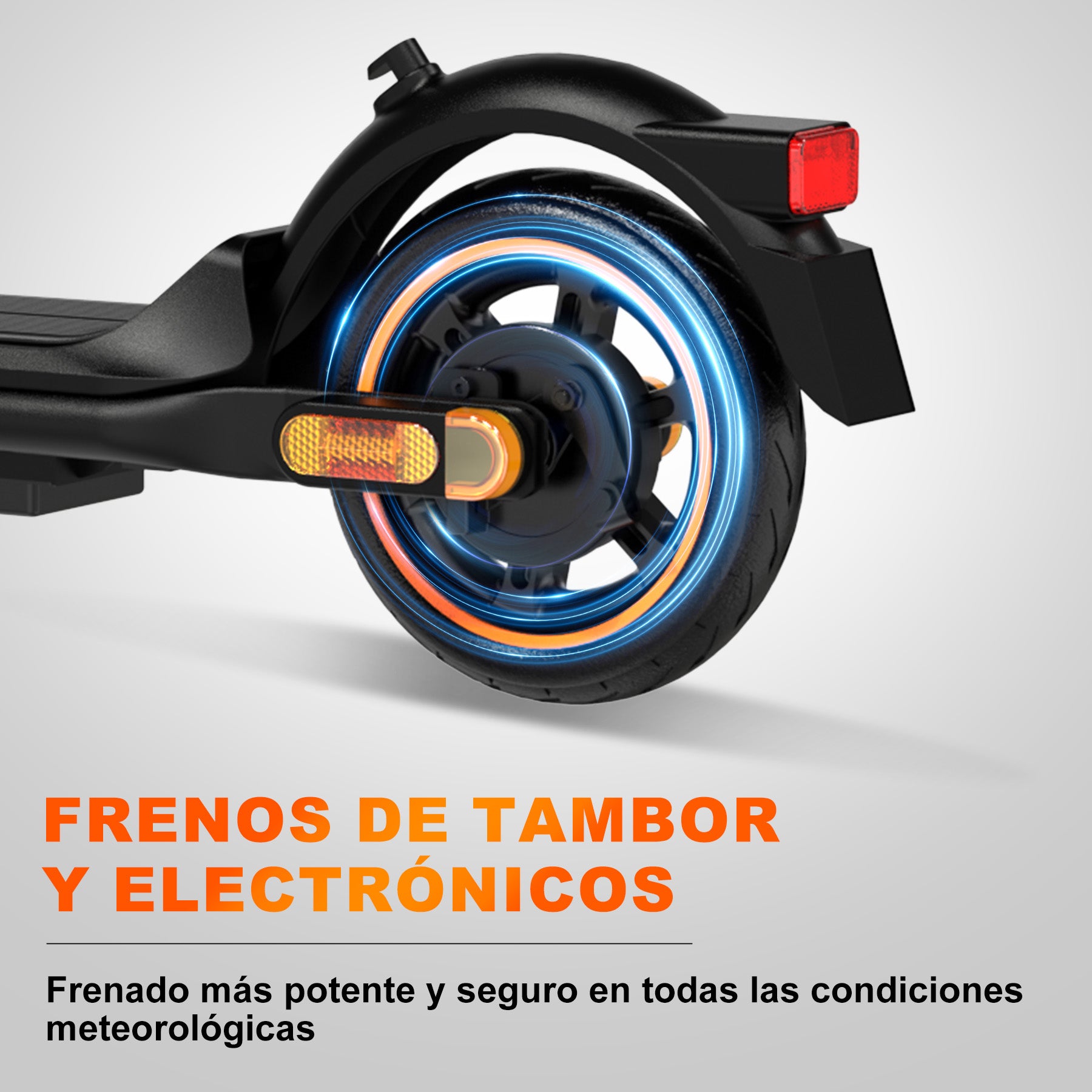 Los sistemas de doble frenado (frenos de tambor y frenos electrónicos) garantizan una respuesta rápida y un frenado suave y fiable, lo que proporciona una protección de seguridad integral.