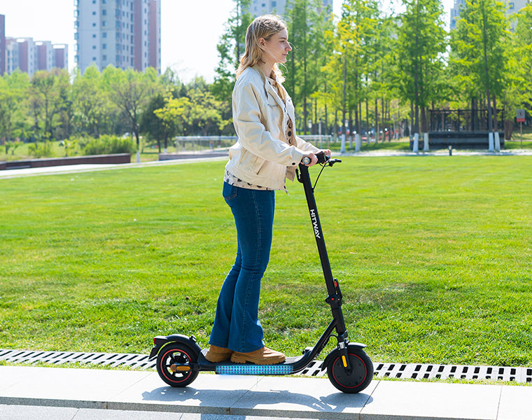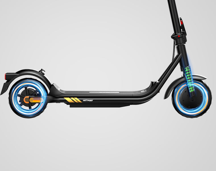 El scooter eléctrico HITWAY H12 está equipado con un motor sin escobillas de alto rendimiento de 350 W, que ofrece una potencia máxima de hasta 500 W para un rendimiento potente. Puede alcanzar una velocidad máxima de 35 km/h y subir sin esfuerzo pendientes con una inclinación de hasta 10°, lo que garantiza que cada viaje esté lleno de energía.