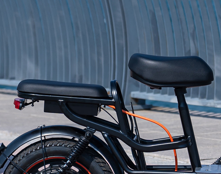 El cojín más ancho y grueso es ergonómico, por lo que no se sentirá cansado incluso después de un largo viaje. El asiento trasero también es estable y cómodo, y puede soportar hasta 40KG, por lo que es fácil transportar niños o cargas sin presión. El acolchado de alta elasticidad hace que el asiento se sienta suave y seguro.