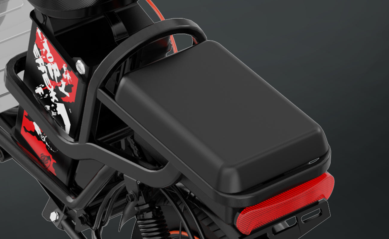 1000 W motor de súper potencia, potencia máxima de hasta 1500 W, conquistar fácilmente 15 ° pendientes pronunciadas, haciendo que los desplazamientos urbanos sean todo un placer de conducción. 60 V 27 AH batería de litio de alta capacidad para proporcionar batería de larga duración, 6-7 horas de carga rápida puede ser revivido, diseño extraíble hace que la carga flexible y no ocupa mucho espacio. La cesta delantera de 20 kg puede almacenar fácilmente mochilas y cestas de verduras, y el asiento trasero de 40 kg puede transportar tanto carga como personas.